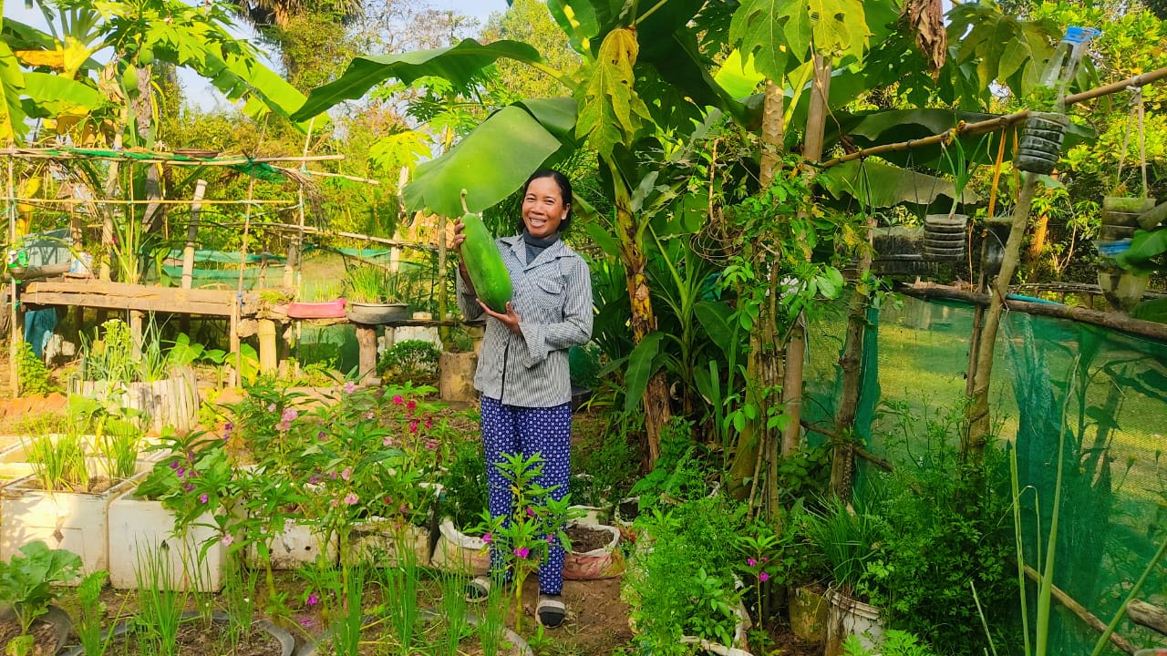 Srey Kem and her husband, Chim Hoap, find immense joy in their victory garden. It's not just a source of nourishment for their family; it also enables them to afford essential medicines and medical visits. Now in their 70s, they cherish the extra income they generate—sometimes as much as $100 per month. Beyond the financial benefits, Srey Kem finds deep fulfillment in sharing their surplus produce with neighbors and regularly donating to the nearby Buddhist temple.