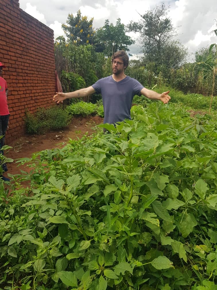 Above: Thenson stands in his victory garden which remained intact after Cyclone Freddy.