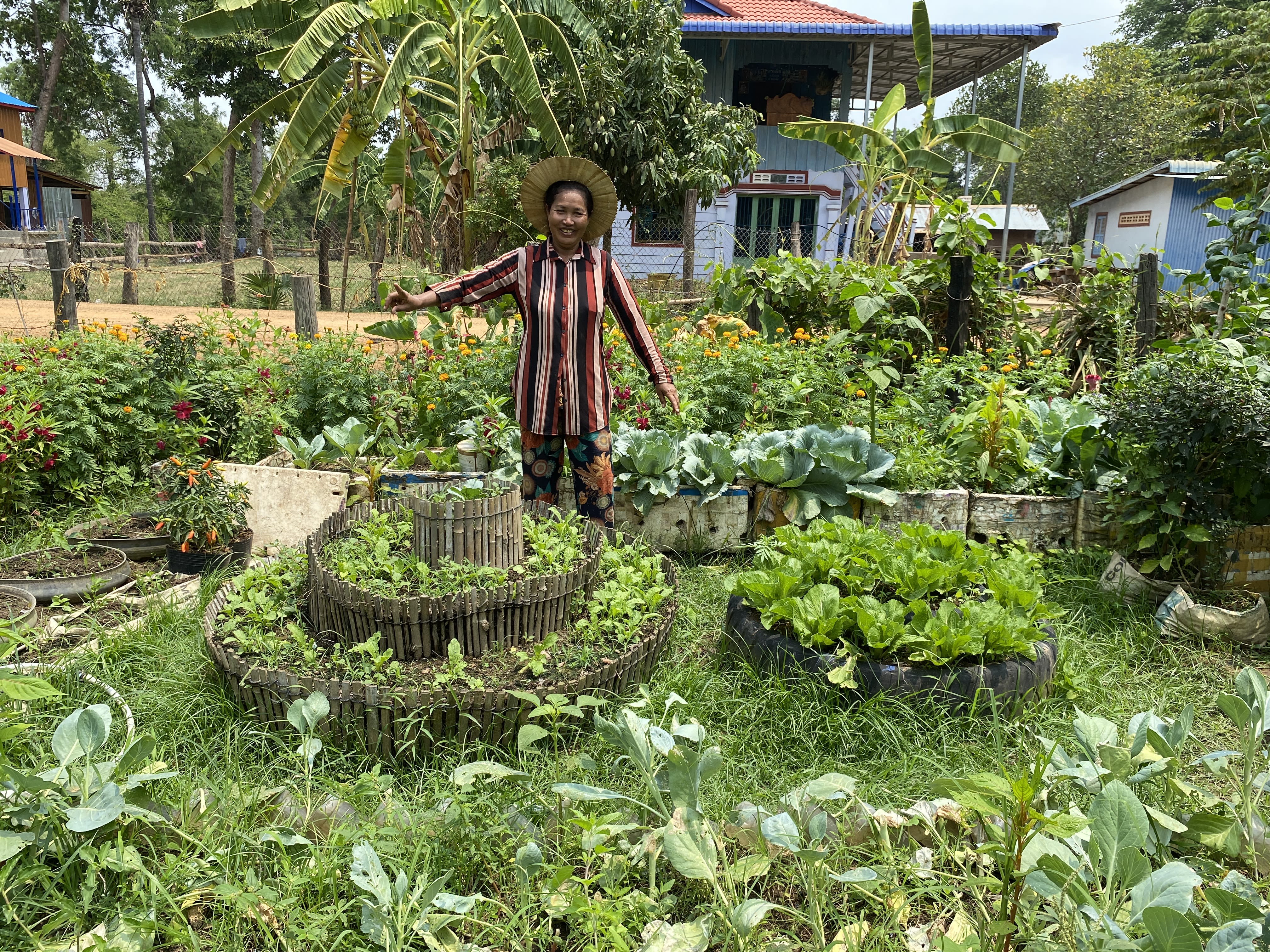 In Cambodia, victory gardens offer those confined to their homes—due to physical limitations or caregiving responsibilities—a way to grow their own food, generate income, and contribute to their families, thus providing them with a renewed sense of purpose and autonomy.